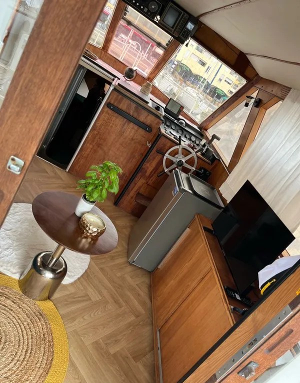 Le bateau est conçu comme un véritable appartement sur l’eau, entièrement équipé :