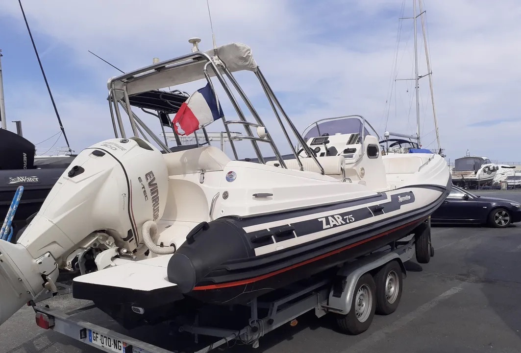 Découvrez le semi-rigide familial par excellence : le Zar 75 Suite Plus (7,42 m). Réputé pour son passage en mer exceptionnel et son habitabilité hors norme (homologué pour 14 personnes, Catégorie B), ce modèle de 2008 est une opportunité unique, prêt pour la saison 2026.