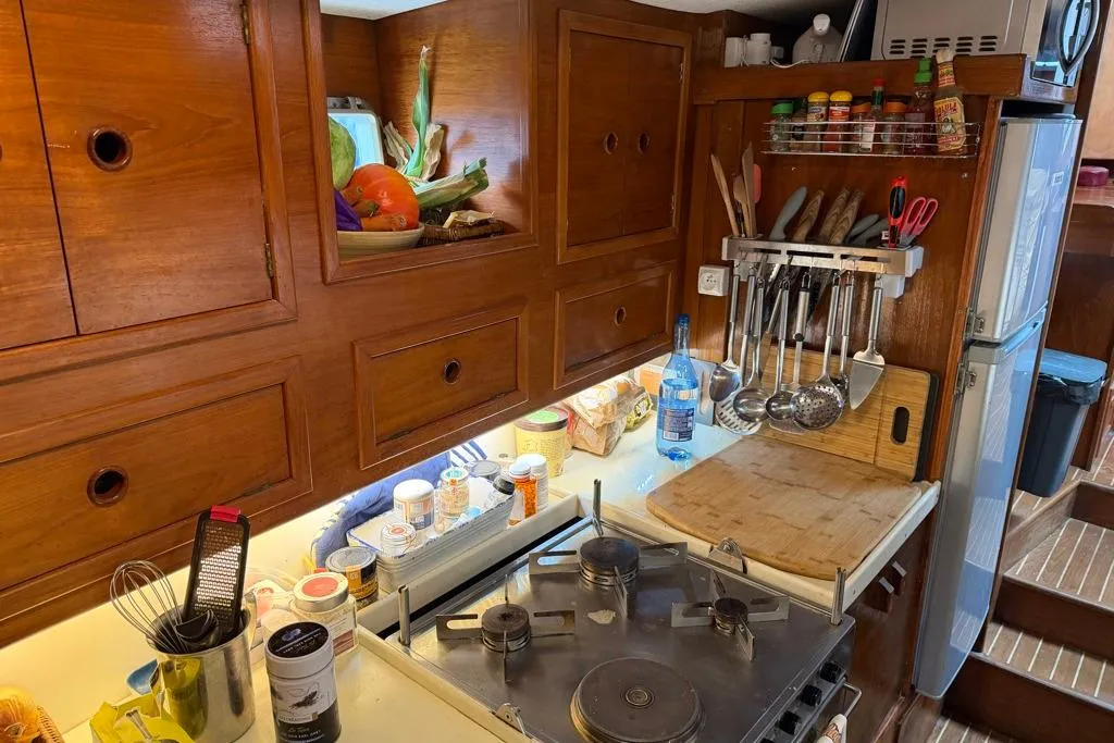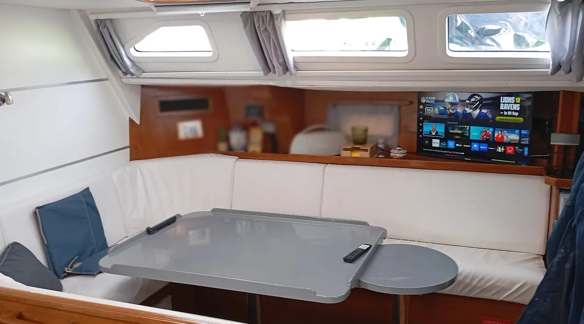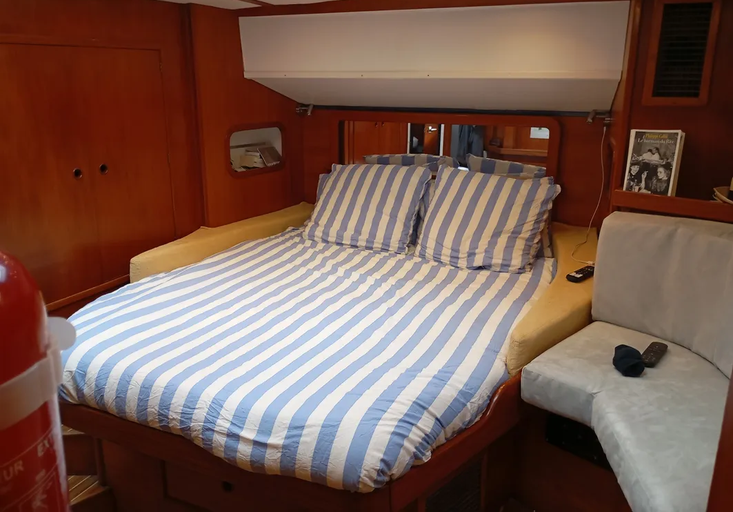 Rien n’a été laissé au hasard : chauffe-eau inox neuf (2025), taud de fermeture totale du carré (février 2025), et ligne de mouillage complète en inox.