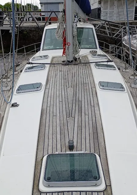 Doté d’un gréement Seldén de 2019 (mât et bôme), il dispose d’un jeu de voiles Sailonet neuf (2022, jamais servi) : Grand-voile Full Batten et Génois de 90 m². La manœuvre est facilitée par des winchs électriques et un propulseur d’étrave Vetus.