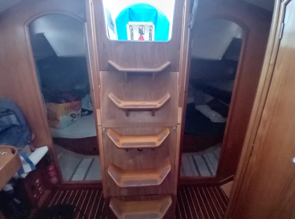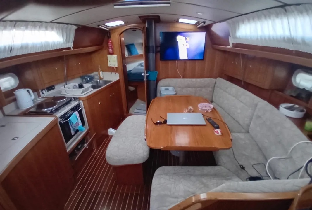 Idéal pour la croisière hauturière ou familiale, il offre 3 cabines doubles (8 couchages) avec matelas et sommiers sur mesure. Le carré est lumineux, la cuisine est parfaitement équipée et le confort thermique est assuré par un chauffe-eau récent.