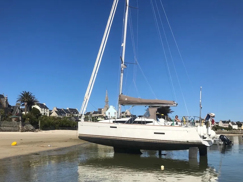 Gamme Sun Odyssey. Ce voilier  379 DL est une unité de propriétaire méticuleusement entretenue, offrant une polyvalence rare grâce à son tirant d’eau variable (1,10 m à 2,25 m) et ses bi-safrans, parfaits pour l’échouage et un contrôle total sous voile.