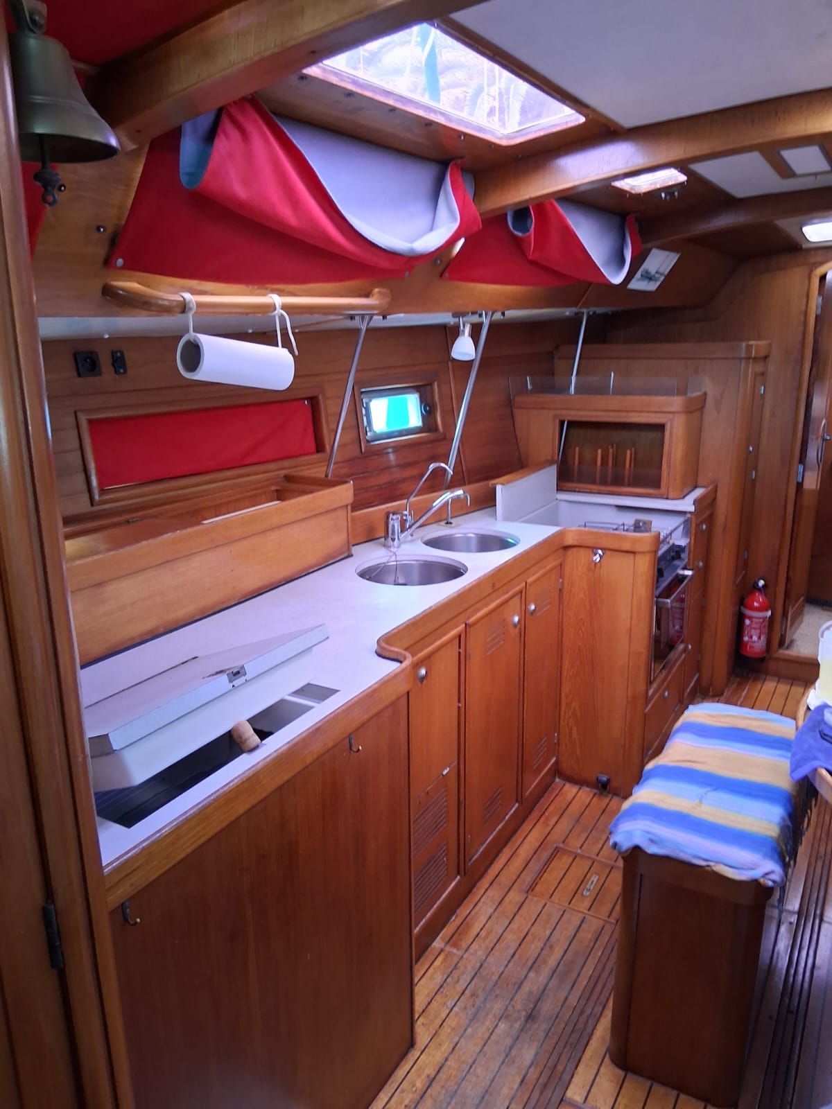 Ce voilier de 12,50 mètres datant de 1998 représente un bateau solide et éprouvé, idéal pour un programme de voyage au long cours en famille ou entre amis.